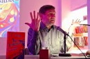 Der Autor entspinnt in „Die Enthusiasten“ eine sich überstürzende Geschichte, die darüber hinaus dem geneigten Publikum unzählige literarische Anspielungen bietet. Lebhaft ging es auch bei der Lesung zu.