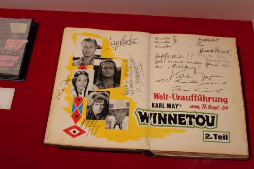 Große Teile der von Magdalena Drexl kuratierten Ausstellung befassen sich mit den legendären Filmtheatern des Ruhrgebiets. Zu denen zählt auch das größte deutsche Kino, die Essener Lichtburg, in der nach wie vor Premieren mit großem Staraufgebot gefeiert werden. Im Ruhr Museum kann man eintauchen in die goldene Ära des Kinos, als internationale Stars wie Gary Cooper, Romy Schneider oder die komplette Crew von „Winnetou II.“ die Zuschauermassen nach Essen strömen ließen. Etliche Fotos zeugen von diesen Großereignissen, Autogramme und Gästebucheinträge runden die Eindrücke stilvoll ab.