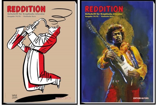 Die Fachzeitschrift Reddition erscheint seit 1984 zu unterschiedlichsten Comic-Themen oder Comic-Künstler:innen. Die Doppelnummer 74/75 widmet sich mit einem umfangreichen Dossier ganz dem Thema „Comic und Musik“. Eine spannende Exkursion in die fehlende Tonspur des Mediums, das von vielen Künstler:innen weniger als Mangel denn als Herausforderung verstanden wird. Die Texte und Interviews beschäftigen sich fundiert mit Robert Crumb, Reinhard Kleist (mit einem Interview zu seinem neuen Bowie-Comic), Serge Clerc, Bill Sienkiewicz, den Peanuts, den Beatles, Bowie, Kiss sowie Hip Hop und Jazz im Comic, Musikern, die Comics machen und nicht zuletzt mit gezeichneten Plattencovern. Die 100 Seiten sind reichhaltig bebildert.