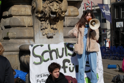Die Aktionen können unterschiedliche Formen annehmen: Mal sind es organisierte Großdemonstrationen, wie die globale Klimademonstration, die am kommenden Freitag (15.3.) vor dem Bahnhofsvorplatz stattfinden wird, mal sind es Kundgebungen mit Ansprachen, Musik und Gruppenaktivitäten. Am letzten Freitag, den 8.3. organisierten die SchülerInnen eine öffentliche Malaktion. Begleitet von anregender Musik verzierten dort junge Aktivisten eifrig den Platz vor dem Rathaus mit Straßenmalkreide. Neben Abbildungen von Kühltürmen und hoffnungsvollen Sprüchen à la „Save the Earth“ waren auch forschere Parolen zu finden, aus denen die Verzweiflung der Jugendlichen sprach („Wir sind hier, wir sind laut, weil man uns die Zukunft klaut“). Die Stimmung bei der Veranstaltung war kraftvoll, das Gefühl der Hoffnung und Dynamik, das die jungen SchülerInnen verbreiteten, immens.